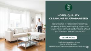 Our experienced team uses high-quality cleaning products and follows detailed checklists to ensure every space is pristine, hygienic, and welcoming. We work with homeowners, landlords, and rental hosts to deliver reliable, efficient, and flexible cleaning services tailored to each client’s needs.