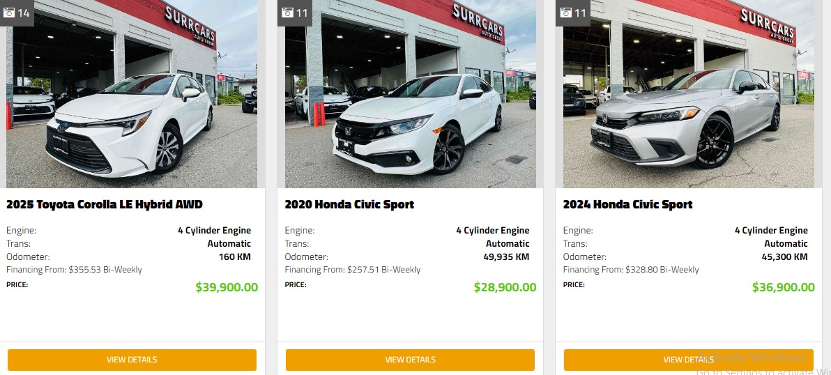 Surrcars is a dealership in Canada that specializes in selling used cars. We have a wide variety of pre-owned vehicles available at reasonable prices. Our focus is on providing quality cars and excellent customer service. Visit us for a superior car-buying experience.